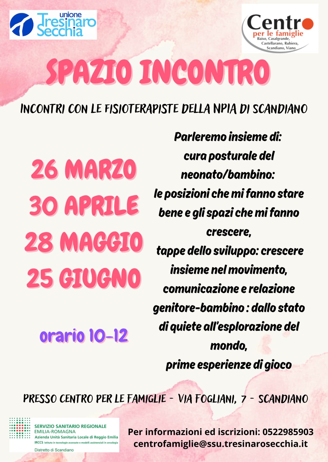 Ogni ultimo giovedì del mese ci saranno le FISIOTERAPISTE della Neuropsichiatria infantile di Scandiano.