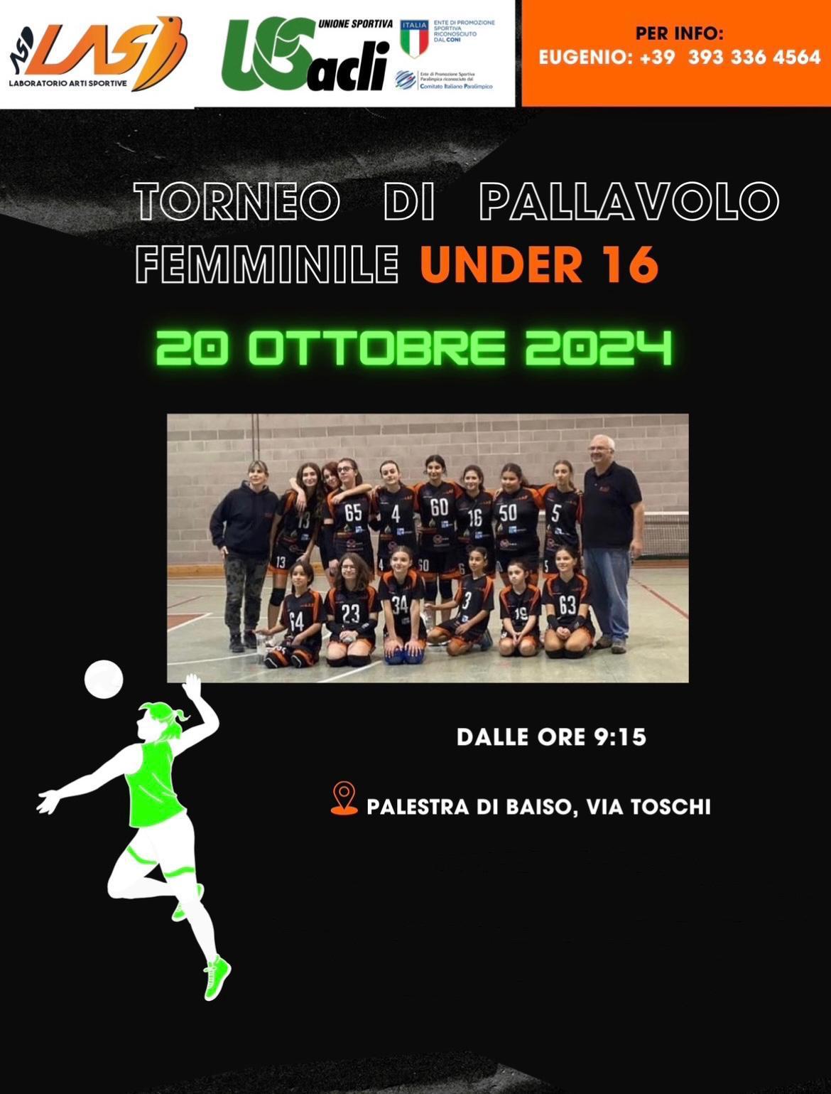 Domenica 20 ottobre, ore 09,15, presso la Palesra di Baiso, al Centro Civico, Torneo di Pallavolo femminile Under 16.